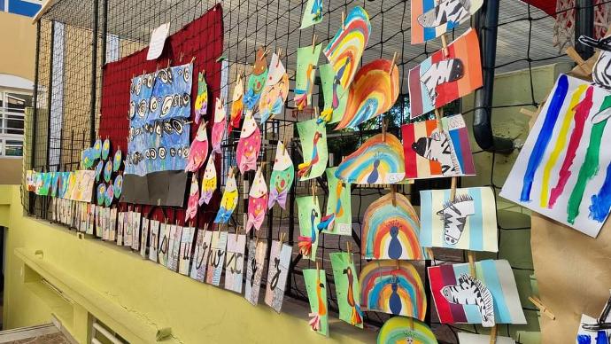 L'école, c'est aussi nourrir son imaginaire et développer sa créativité. Le 16 juin, les productions artistiques des classes de maternelle et de primaire ont été présentées à l'équipe, aux élèves et aux parents. Un festival de couleurs, de textures, des projets inventifs sur des thèmes soigneusement pensés. L'école s'est parée de ses plus beaux atours !